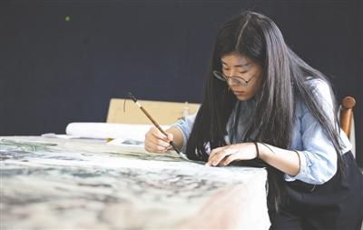 汤丽莎正在完成她和同学的设计
