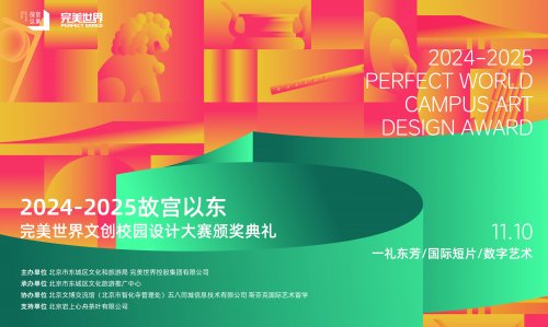 2024-2025故宫以东完美世界文创校园设计大赛颁奖典礼由北京市东城区文化和旅游局、完美世界控股集团主办,北京市东城区文化旅游推广中心承办,北京文博交流馆(北京市智化寺管理处)、五八同城信息技术有限公司、斯芬克国际艺术留学协办,北京岩上心舟茶叶有限公司支持。